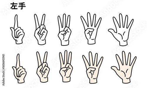 © ふぁじ, Obraz premium 指で数字を表す手のイラスト(左手)