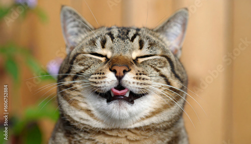 © 05, Obraz premium 장난스럽게 윙크하면서 입을 살짝 벌리고 있는 코리안 쇼컷 고양이