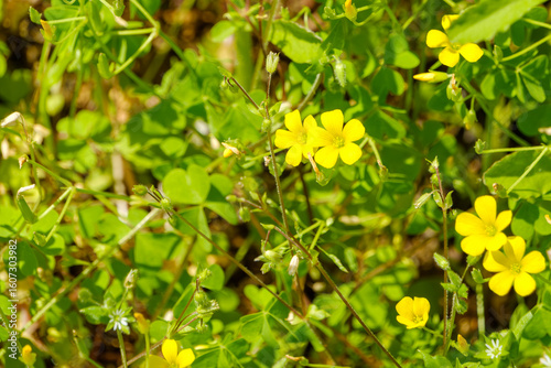 © Kazutaka, Obraz premium 春の野に咲くカタバミの黄色い花