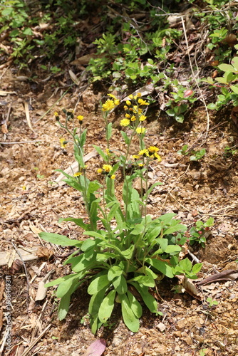 © onaka, Obraz premium 白馬 小遠見山の風景。登山道に咲くヤナギタンポポ。