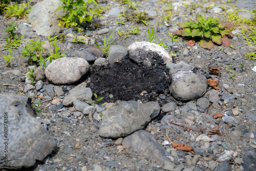 Fototapeta premium 石で囲まれた焚き火跡