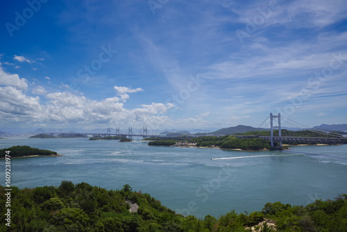 Naklejka premium 倉敷・鷲羽山から望む瀬戸大橋の全景