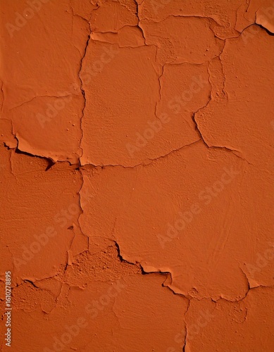 Obraz premium マットなバーントオレンジ背景に微細なひび割れ塗装模様と影のオーバーレイが重なり、素朴で温かみのあるラスティックな雰囲気を演出する素材