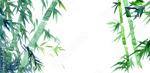 Fototapeta premium 水彩の手描き素材。滲みが美しい竹の背景素材