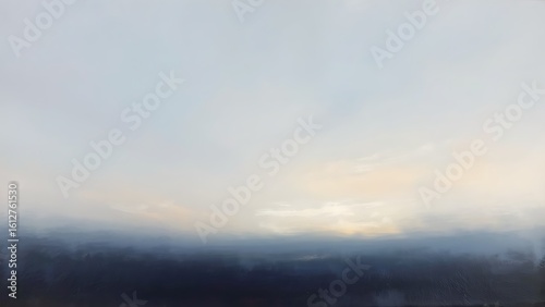 © abstract, Fototapeta premium 夜明けの空と山並みの抽象風景画、淡い光が広がる