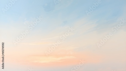 Fototapeta premium 柔らかな朝焼けの空の抽象画、パステルオレンジとブルーの調和