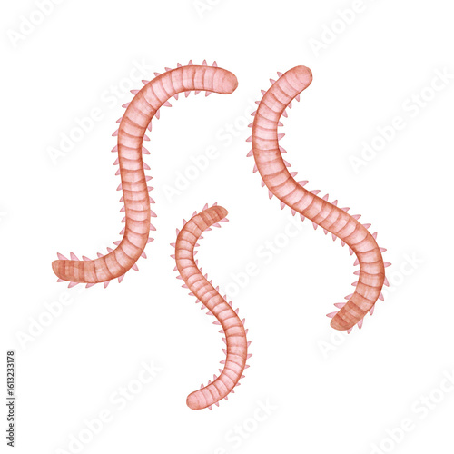 Obraz premium 海釣り 魚釣り 釣り餌 アオイソメ 水彩 イラスト