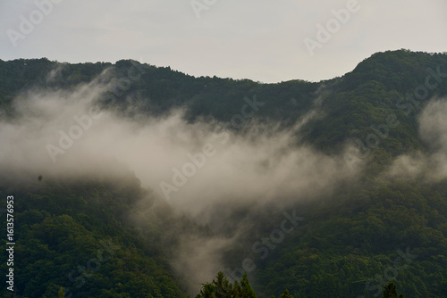 Fototapeta premium 山の息吹、白き霧の川