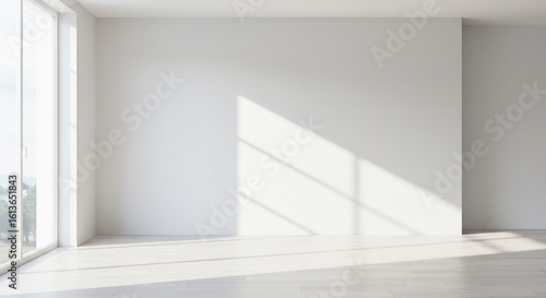 Fototapeta premium 白く清潔な室内に差し込む柔らかな日差しが輝く、空室の静かな空間