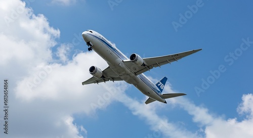 Obraz premium 青空を力強く上昇する大型旅客機の姿