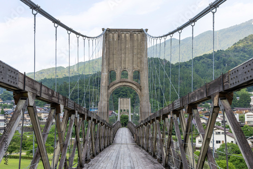 © Jazz Hapi Yuko, Obraz premium 歴史的な木造吊り橋と山の風景が美しい長野県の桃介橋