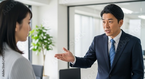 Obraz premium 真剣な指導:部下の成長を促す日本人男性社員