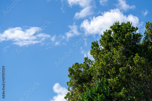 Obraz premium 初夏の青空と新緑の木と白い雲