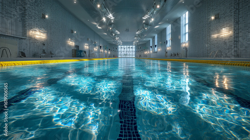Obraz premium 広大な静かな屋内プールの水中全景演出美