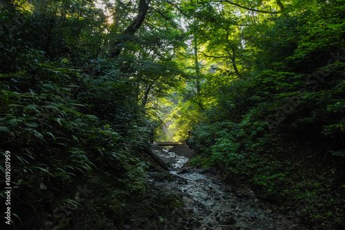 © ramustagram, Obraz premium 朝日が差し込む高尾山6号路