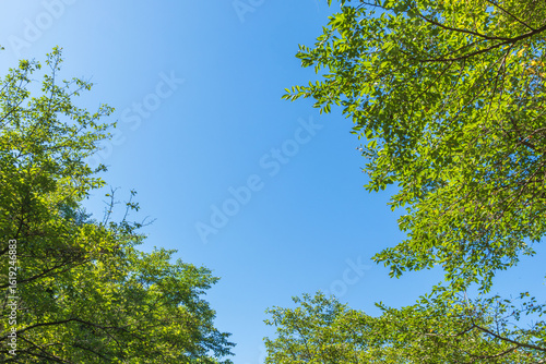 Obraz premium 夏の風景 森から見上げた青空と木々11