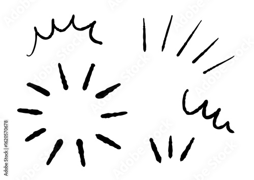 © ebiko, Obraz premium 手書きの黒い気づき線 漫符アイコンセット