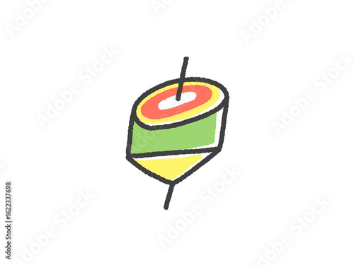 Obraz premium 手描きのかわいいカラフルな日本の独楽の線画イラスト 2026年 正月素材