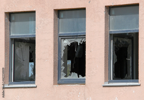 Fototapeta premium Выбитые стекла в окнах заброшенного здания в Москве