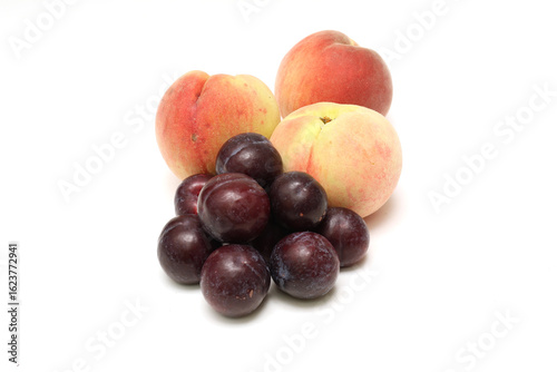 Fototapeta premium 白背景の桃とスモモ