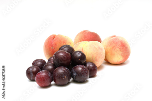 Obraz premium 白背景の桃とスモモ