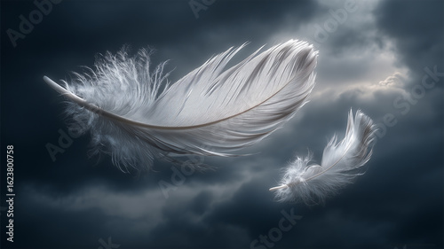 Obraz premium 嵐雲に浮かぶ白い羽の対比