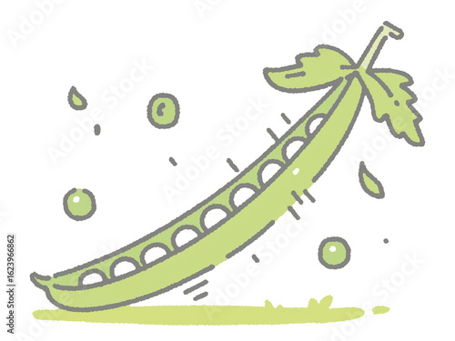 © Wasabi, Fototapeta premium はじける緑の宝石 - 新鮮なエンドウ豆の手描きイラスト