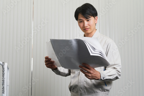 © aijiro, Fototapeta premium 作業用着を着た若い男性 建設イメージ