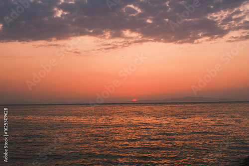 Naklejka premium 泉南マーブルビーチ、美しい夕日の光が印象的な風景、日本、大阪