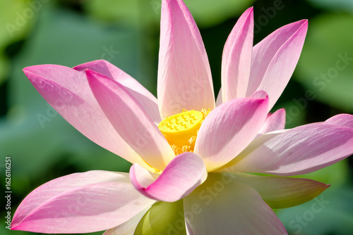 Naklejka premium 夏の朝日に輝くピンク色の蓮の花