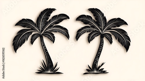 Obraz premium 双椰の影絵