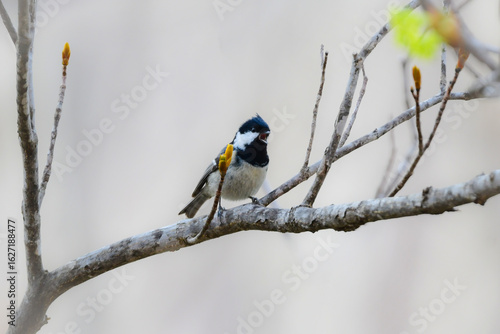 Fototapeta premium 初夏に公園や高原で見られる身近なかわいい野鳥、人懐っこいヒガラ
