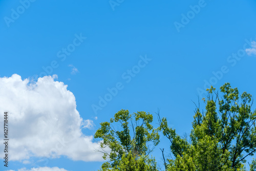 © Kazutaka, Obraz premium 青空と雲に映える夏の緑の木々