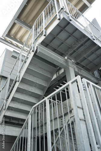 Fototapeta premium 屋外の鉄骨の非常階段