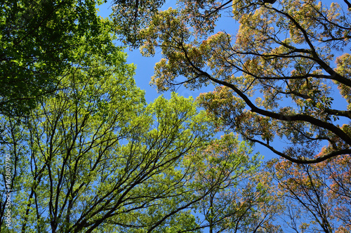 © koufuu, Fototapeta premium 夏の始まり、陽射しを見上げる