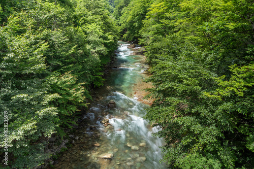 © officeU1, Obraz premium 夏の豊かな緑に囲まれた白砂川の渓谷