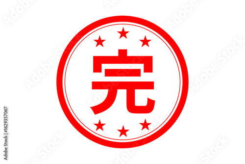Obraz premium 完 - 「完」の文字の、赤いゴム印(スタンプ)のイメージ
