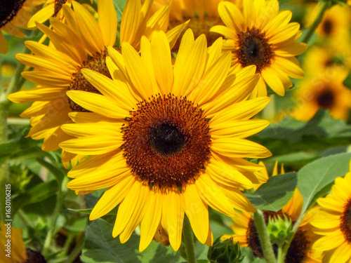 © kinomin, Obraz premium 夏の季節の暑さを感じさせる美しく咲いている満開のひまわり