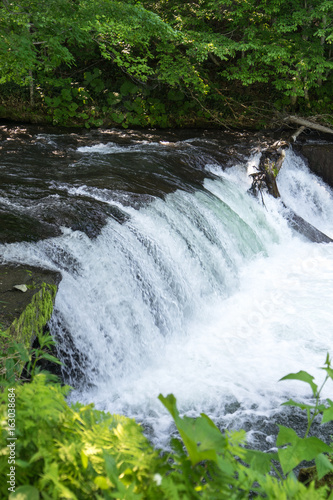 Fototapeta premium 北海道清里町にあるサクラマスが滝超えする季節のさくらの滝