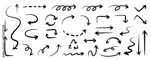 Naklejka premium ベクターのペンの手書きの矢印セット 白黒