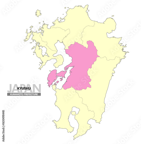 © sasa katsu, Obraz premium 日本地図 九州 熊本県 県境有り 02