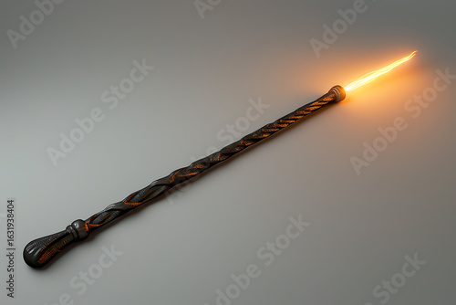 Naklejka premium 黒とオレンジの魔法の杖から発せられる光(ファンタジー小道具)