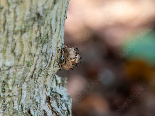 Obraz premium 蝉の脱け殻に群がる小さな蟻