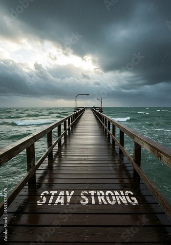 Obraz premium 波立つ海と続く木道、希望の光