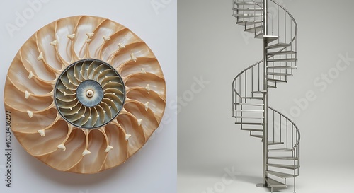 Obraz premium 螺旋とらせん階段 自然と人工の幾何学模様
