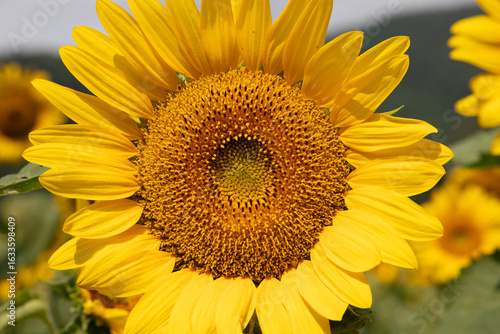 © millionreason, Fototapeta premium 大輪のひまわりのクローズアップ