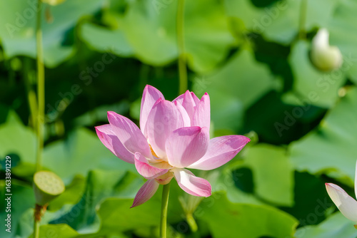 Obraz premium 真夏の日差しに咲く美しい蓮の花