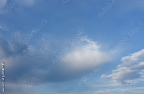 Fototapeta premium 青空と雲「空想・雲のモンスター〔獅子(左端)や飛んでいる鳳凰(画面右下)などのイメージ〕集う、結集、負けない、神話的な、可能性に向かって、明暗、対峙、争う...
