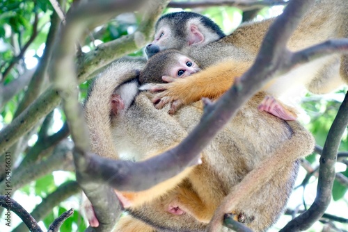© Matsudondon, Fototapeta premium 木の上のリスザルの親子