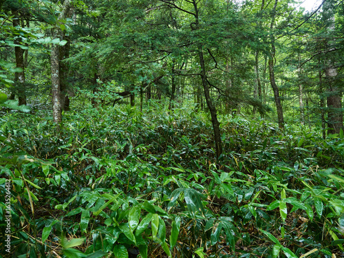 Fototapeta premium 夏の雨の日の観光名所上高地の森の風景